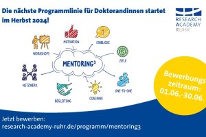Female doctoral researchers from all subject groups at the University Alliance Ruhr can now apply for the next program line in the mentoring³ program. The two-year career development program for female academics will begin in fall 2024.