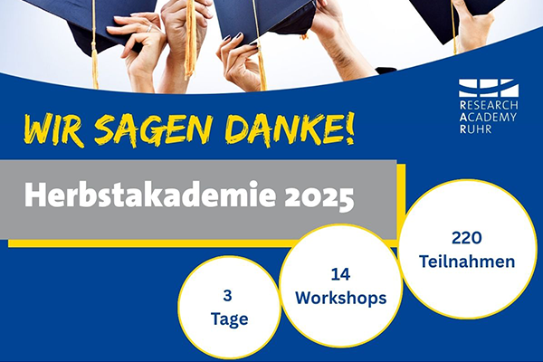 Die Herbstakademie zeichnete sich auch in diesem Jahr durch ihren starken Praxisbezug und die Vielfalt der Themen aus: In 14 Workshops erhielten Promovierende wertvolle Impulse – individuell wählbar und passend zu ihren aktuellen Herausforderungen. Neben bewährten Klassikern wie Schreibcoaching für die letzte Phase der Dissertation oder der Vorbereitung auf die Disputation fanden auch Workshops zu Themen wie dem selbstbestimmten Umgang mit Übergangsphasen und Resilienz, dem gezielten Aufbau von Netzwerken oder zu Karrierewegen innerhalb und außerhalb der Wissenschaft große Resonanz. Ob Präsentationstechniken, Bewerbungstipps oder Zeitmanagement – das Programm unterstützte Promovierende gezielt auf dem Weg zum Doktortitel und bei den nächsten Schritten danach.